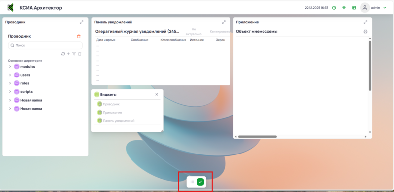 Для сохранения рабочей области выхода из окна редактирования рабочей области необходимо нажмите кнопку в нижней части экрана.