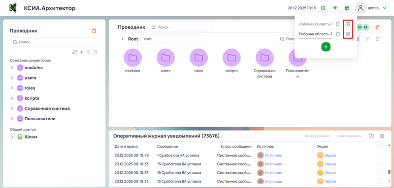 Для редактирования рабочей области нажать кнопку Редактировать.