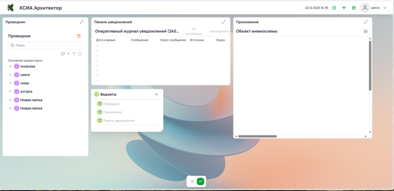 Окно редактирования рабочей области предоставляет пользователю возможность расположить элементы Рабочей области в удобном для него виде.