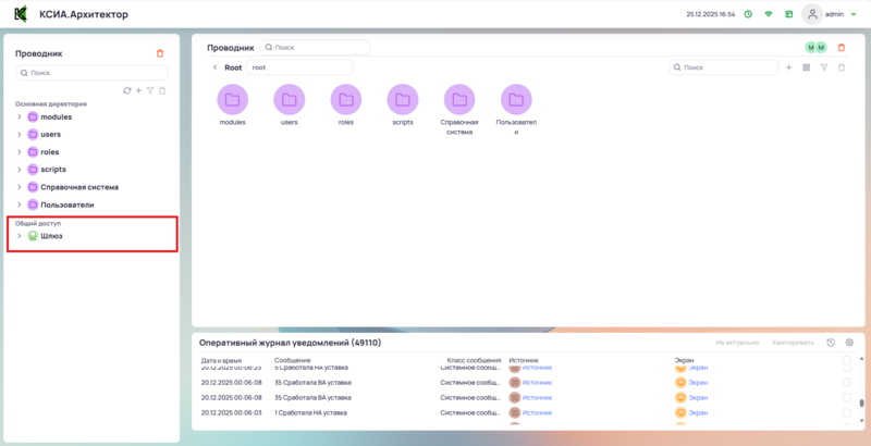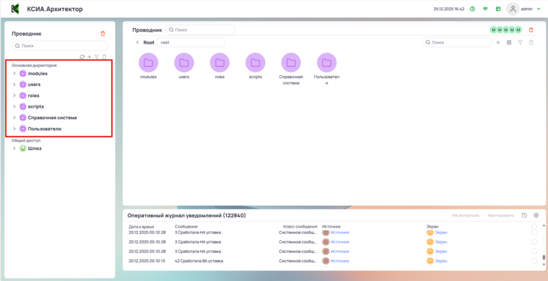 Директория которая видна только пользователю с ролью Администратора системы. В этой директории хранятся все модули системы и вся информация добавленная в систему Администратором.