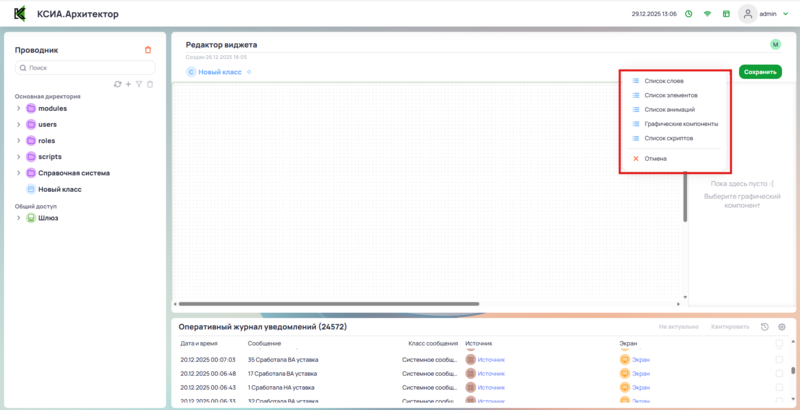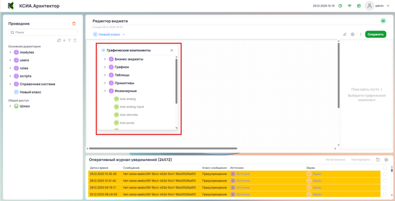 В этом списке представлены все графические компоненты доступных в КСИА.Архитектор.