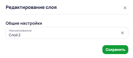 При нажатии кнопки редактировать слой откроется окно Редактирование слоя, в котором доступна возможность изменить название слоя. После ввода изменений нажать кнопку Сохранить.