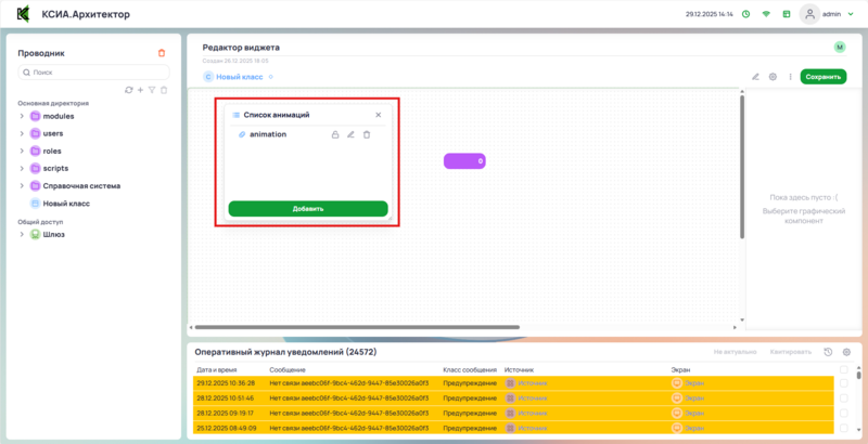 Список анимаций – это список всех анимаций созданных в классе виджета.