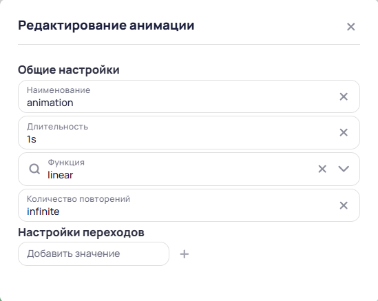 При нажатии на кнопку редактировать анимацию откроется окно Редактирование анимации.