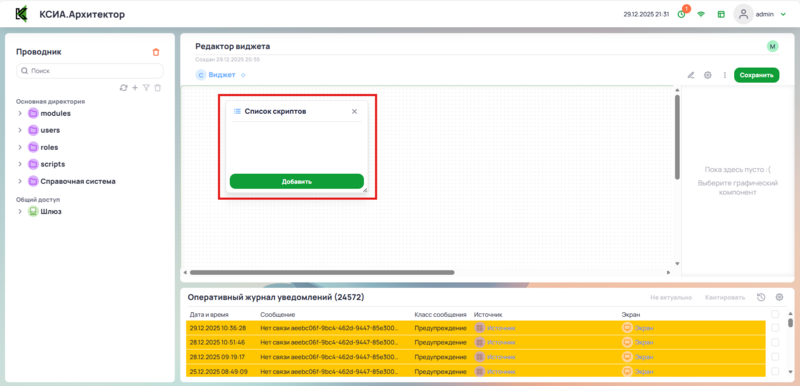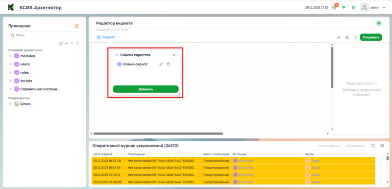 Для создания нового скрипта необходимо нажать кнопку Добавить. В списке появится новый скрипт.