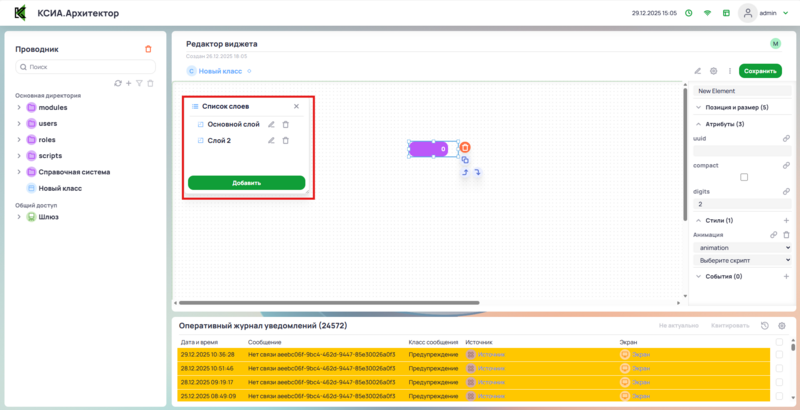 В списке представлен весь список слоёв которые используются в классе виджета. Каждый слой содержит собственный набор компонентов.