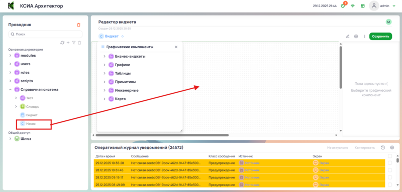 Добавление в класс виджетов других виджетов Для добавления виджета необходимо перетащить виджет из проводника на полотно в редакторе.