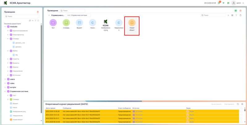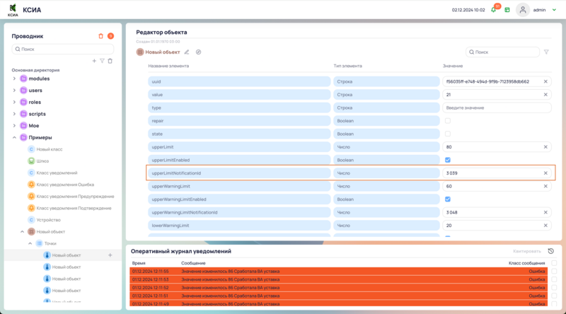 Через редактор объекта настроить объект уведомления.