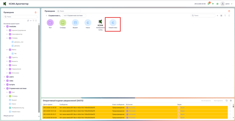 Будет создан класс уведомления с именем Новый класс.