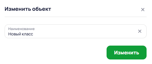 В появившемся окне в поле Наименование ввести новое название класса и нажать кнопку Изменить.