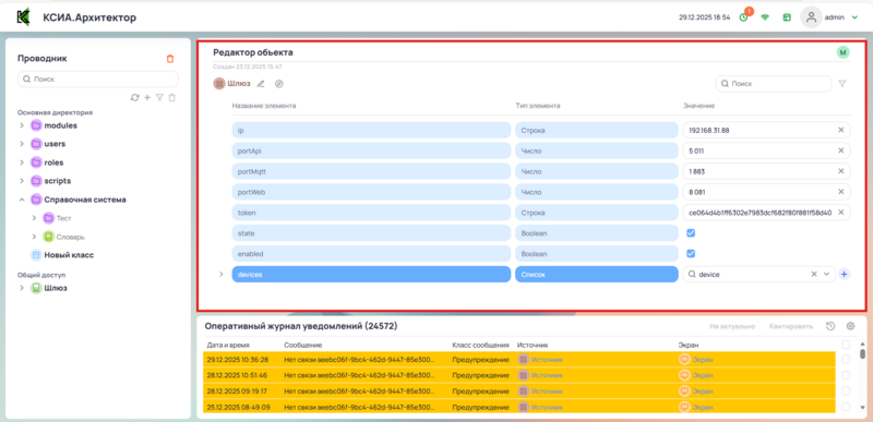 - enabled:переключатель для подключения к устройствам КСИА.Шлюз.