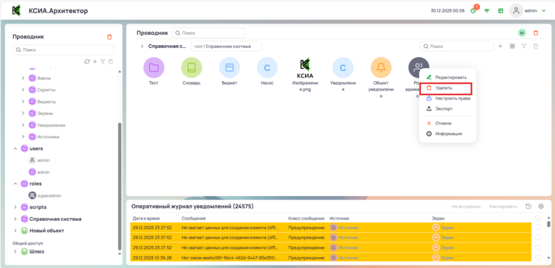 Удаление роли происходит такими же способами как и удаление класса, через контекстное меню в проводнике или папке, подробнее здесь.