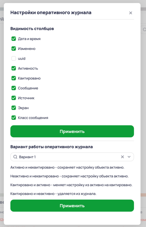 Для настройки отображения информации в Оперативном журнале необходимо открыть окно Настройки оперативного журнала.