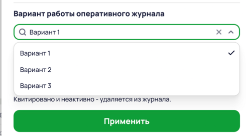 - Квитировано и активно – меняет настройку из активно на квитировано.