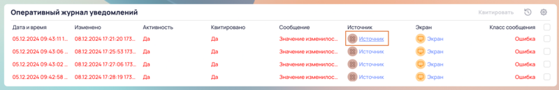 - Источник: источник информации, может быть название точки или объекта автоматизации и т.д., настраивается в классе (п. 12.1).