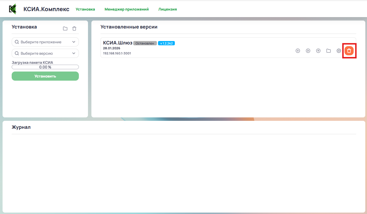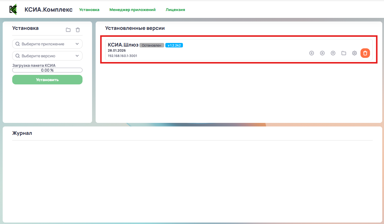 Открыть приложение КСИА Комплекс и в разделе Установленные версии найдите программу КСИА.Шлюз.