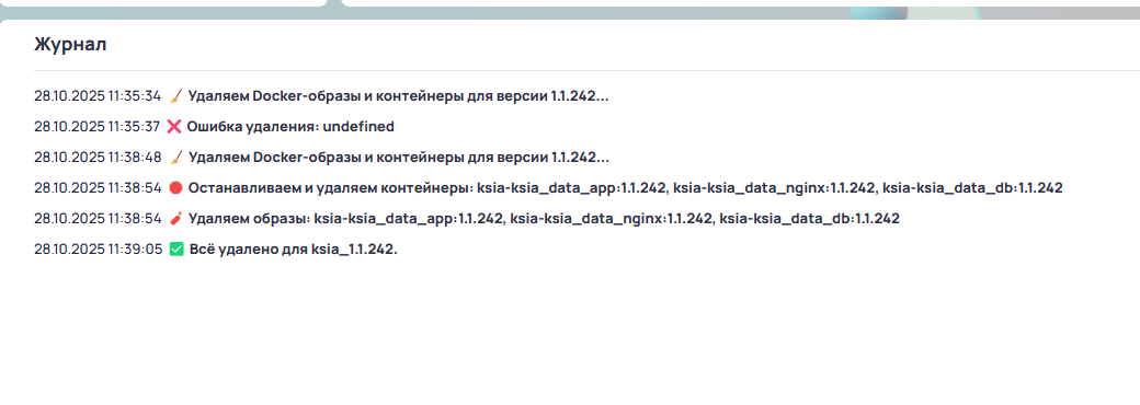 По окончанию процесса из Docker Desktop удалятся все образы КСИА.Шлюз и приложение больше не будет отображаться в списке установленных приложений.