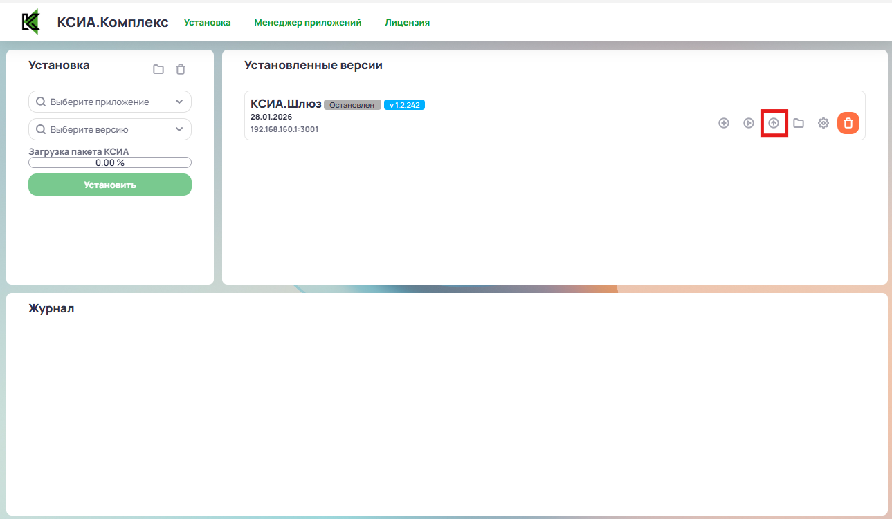 Для обновления КСИА.Шлюз открыть КСИА.Комплекс и нажать кнопку Обновить до новой версии.