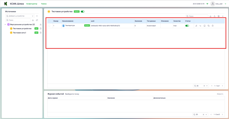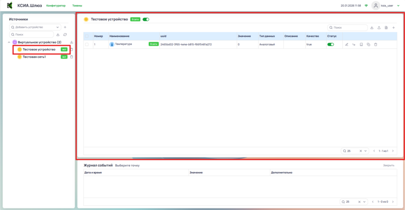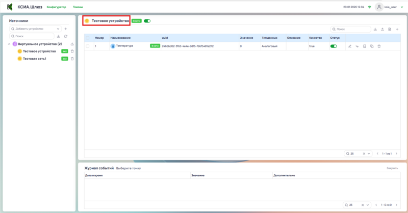 Редактор устройства - встроенный компонент КСИА.Шлюз, предназначенный для работы с точками созданного устройства. Для перехода в редактор устройства необходимо в списке Источника выбрать устройство.
