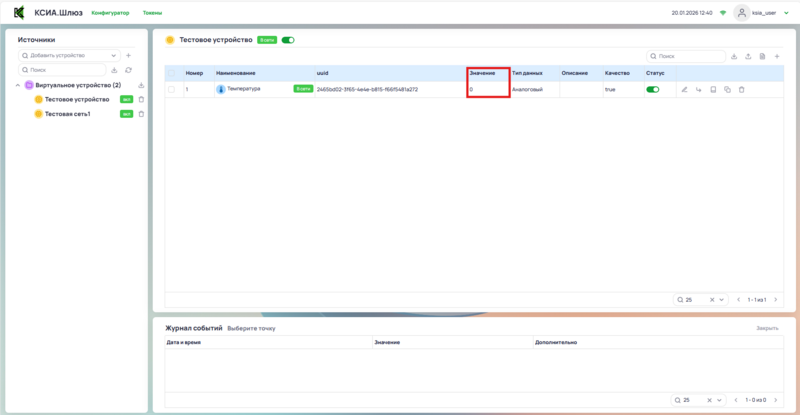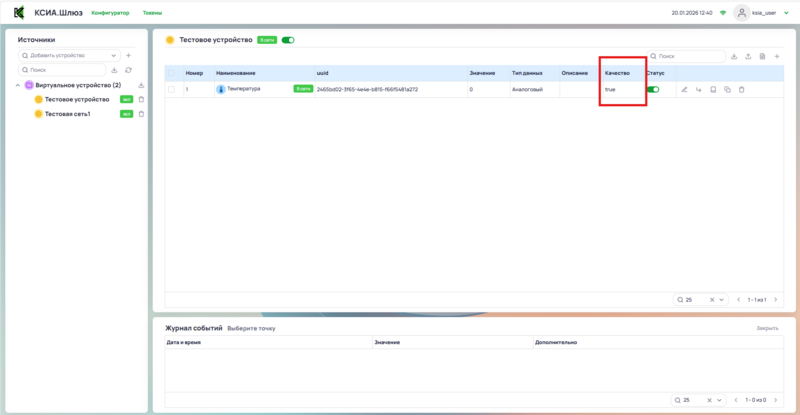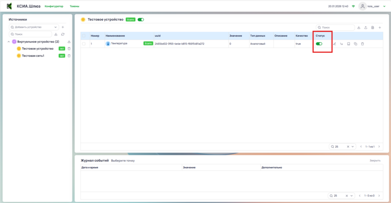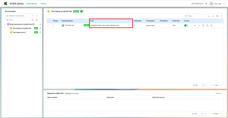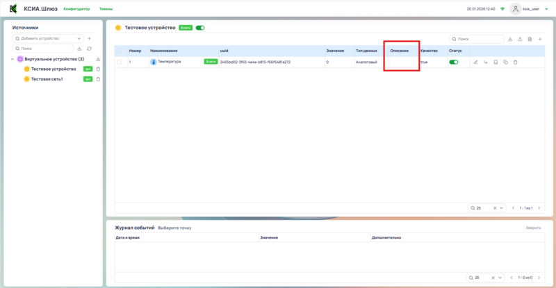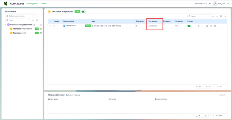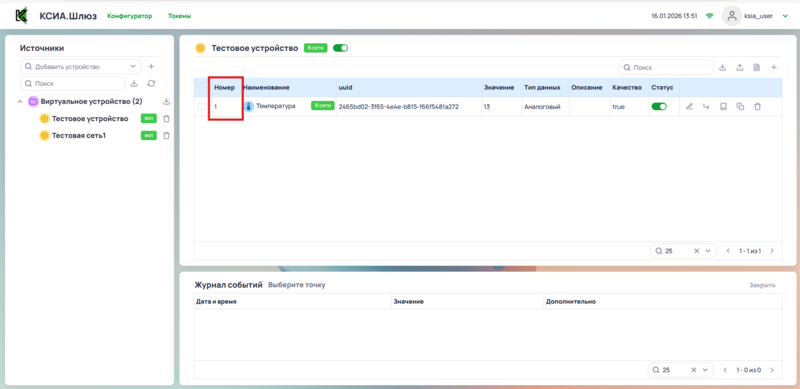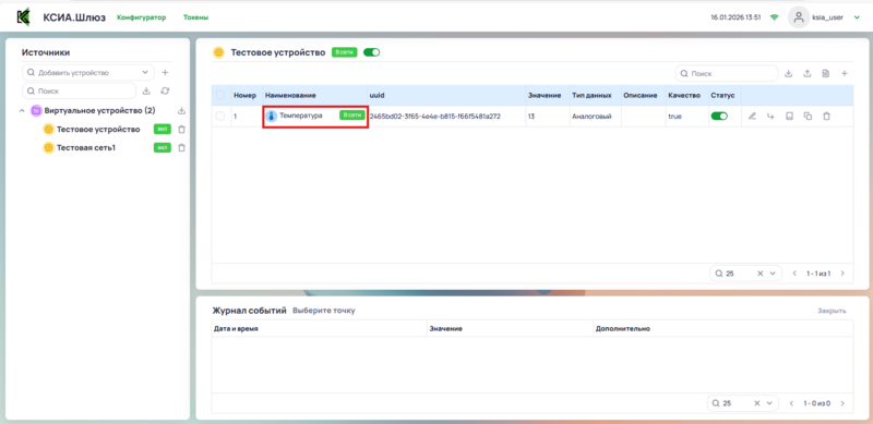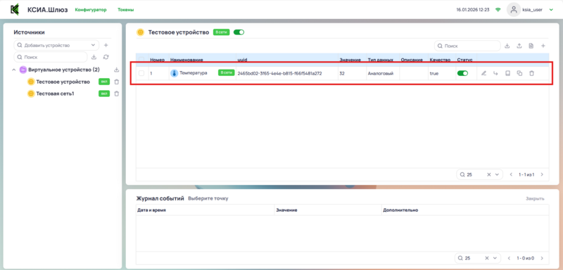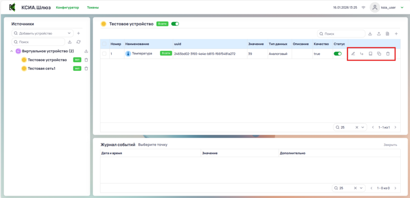 Созданные точки источника данных располагаются в центральной части редактора устройства.