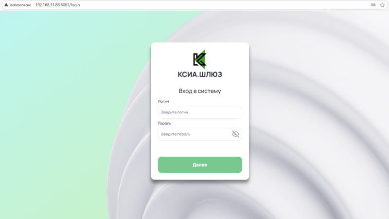 Откройте браузер (MS Edge, Google Chrome, Yandex Browser). В адресной строке введите ip-адрес сервера КСИА Шлюз : порт.