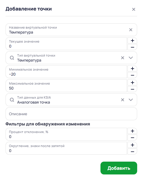 - В поле "Тип виртуальной точки" выберите значение "Температура".