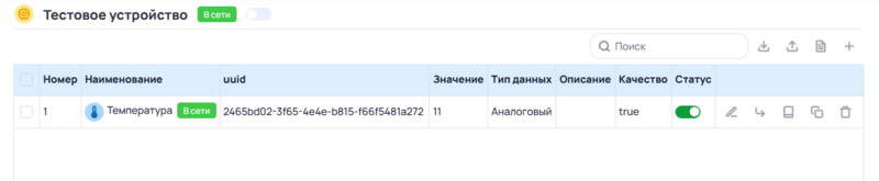 Вы добавили новое виртуальное устройство и настроили точку для вывода данных.