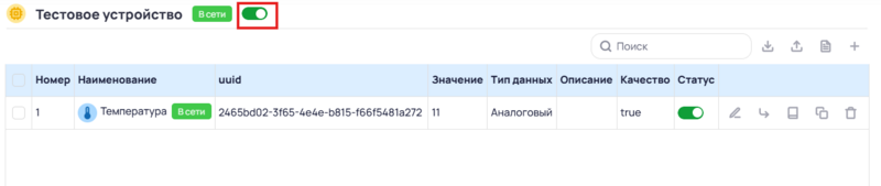 Включите устройство в сеть нажав на переключатель рядом с названием устройства.