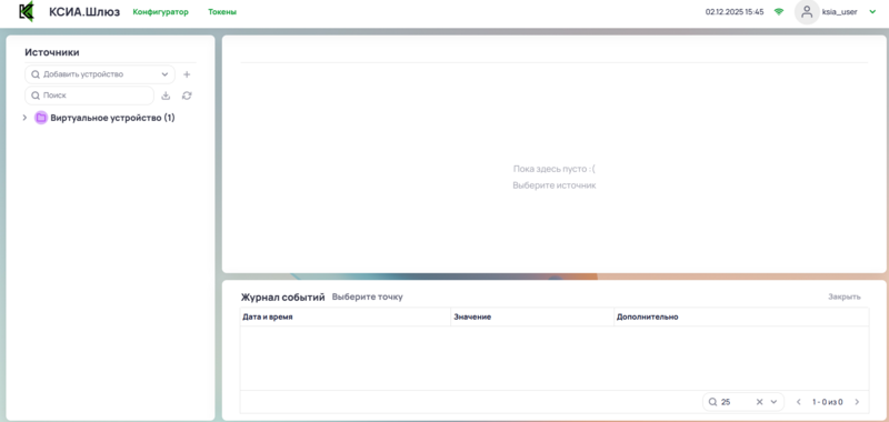 Перед вами открылось главное окно программы КСИА.Шлюз.